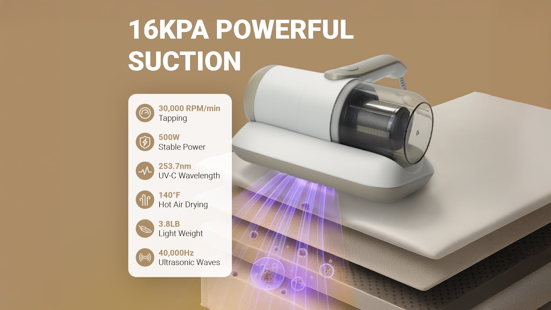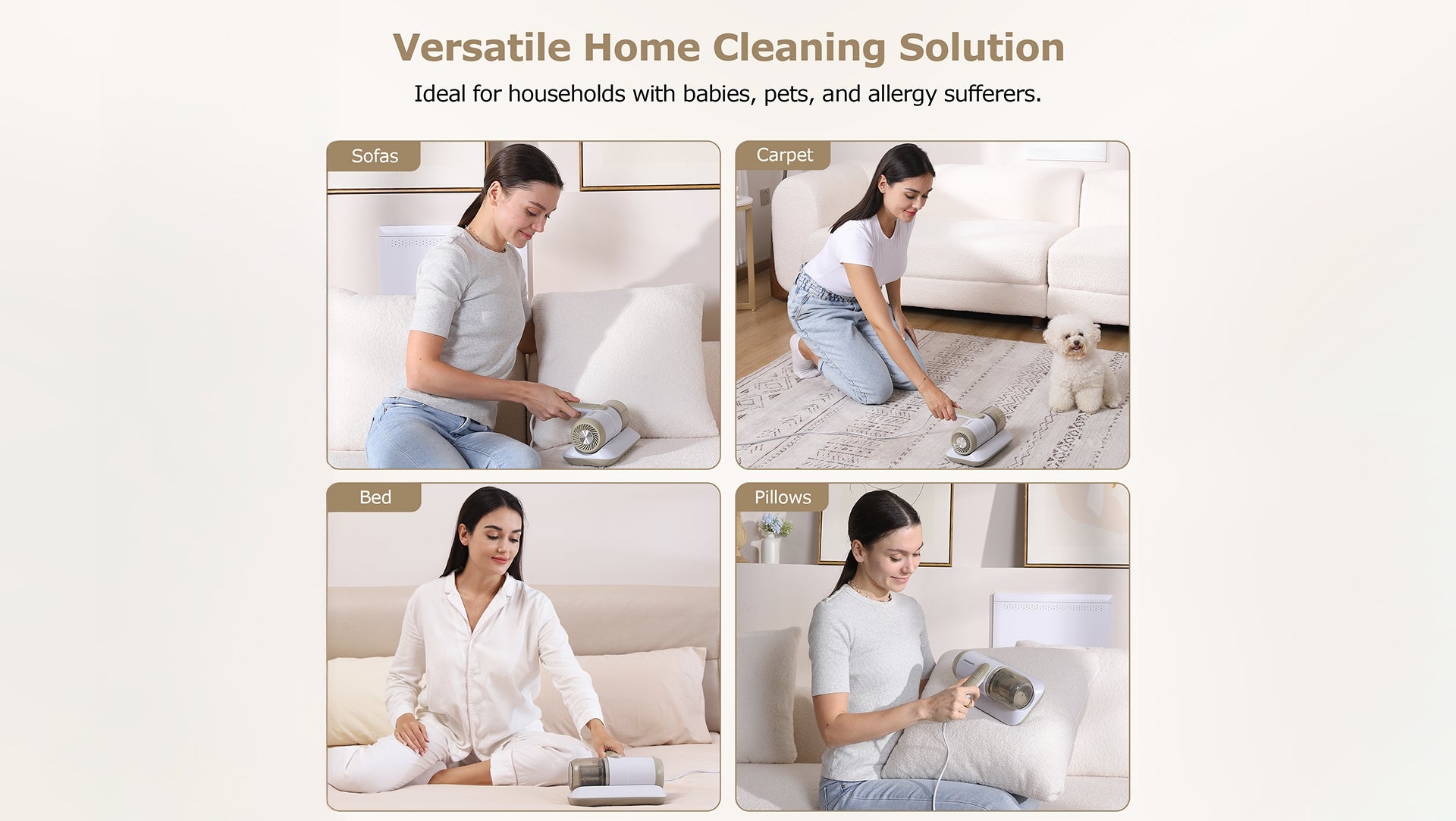 - High-Frequency Vibration: Breaks up and loosens particles trapped in fabric fibers, helping you finally reach dust and germs that have been festering underneath.